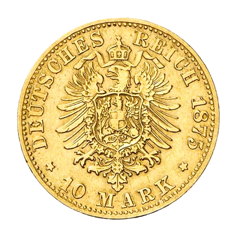 Nach der Vereinigung der deutschen Staaten zum deutschen Kaiserreich, folgte die Einführung einer gemeinschaftlichen Währung, der Mark. Jeder deutsche Staat erhielt das Prägerecht für die Goldmark. Die 10 Reichsmark Goldmünzen wurden zwischen 1872 und 1915 geprägt.
