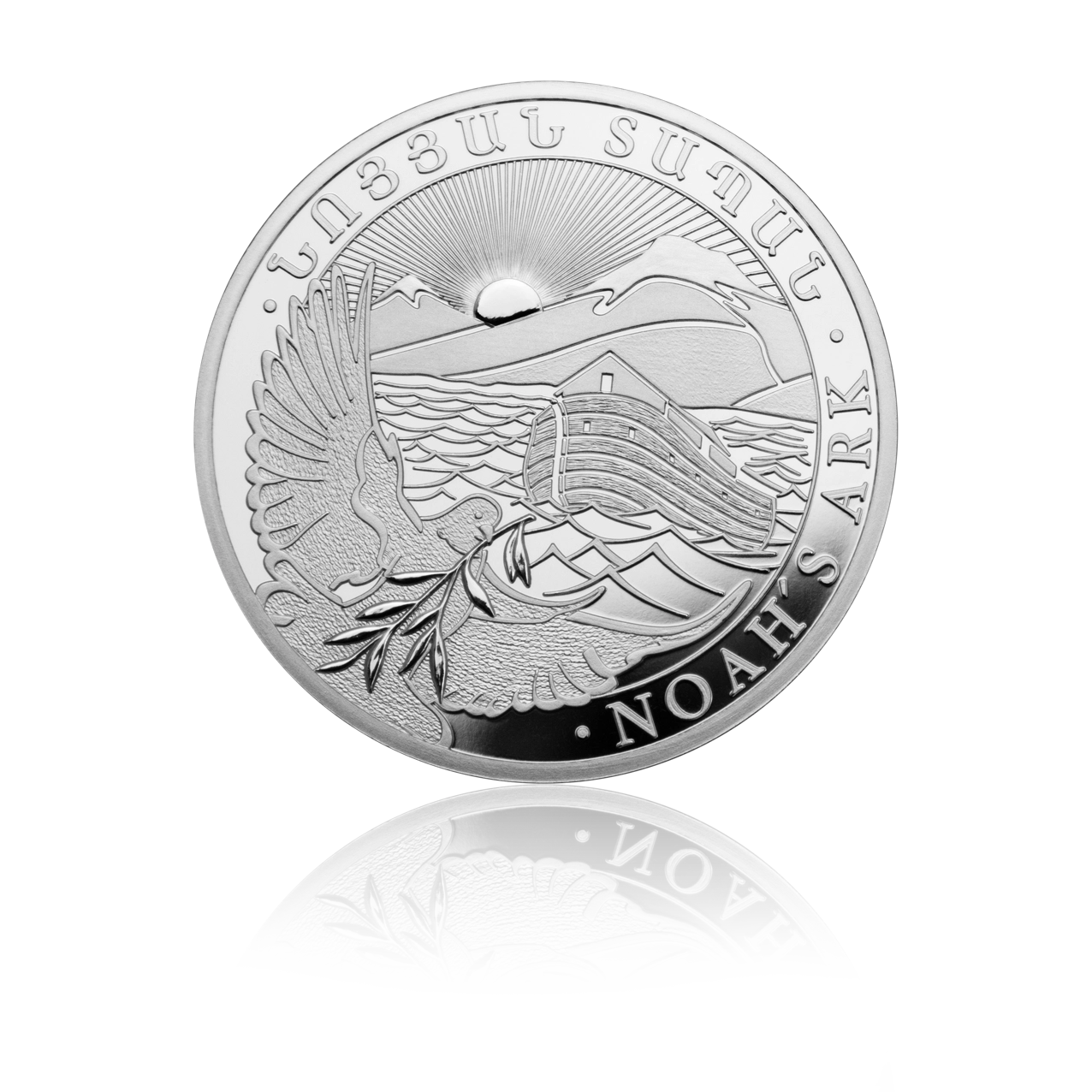 Basierend auf dieser Geschichte ziert die Motivseite der armenischen Bullionmünze die Arche Noah mit dem besagten Berg Ararat und der Sonne im Hintergrund. Ebenfalls ist darauf eine Taube mit Olivenzweig abgebildet, welche als Symbol für das Ende der Sintflut steht. Außerdem wird der Name der Silbermünze - Arche Noah – am Rand der Münze in englischer und armenischer Schrift eingerahmt.