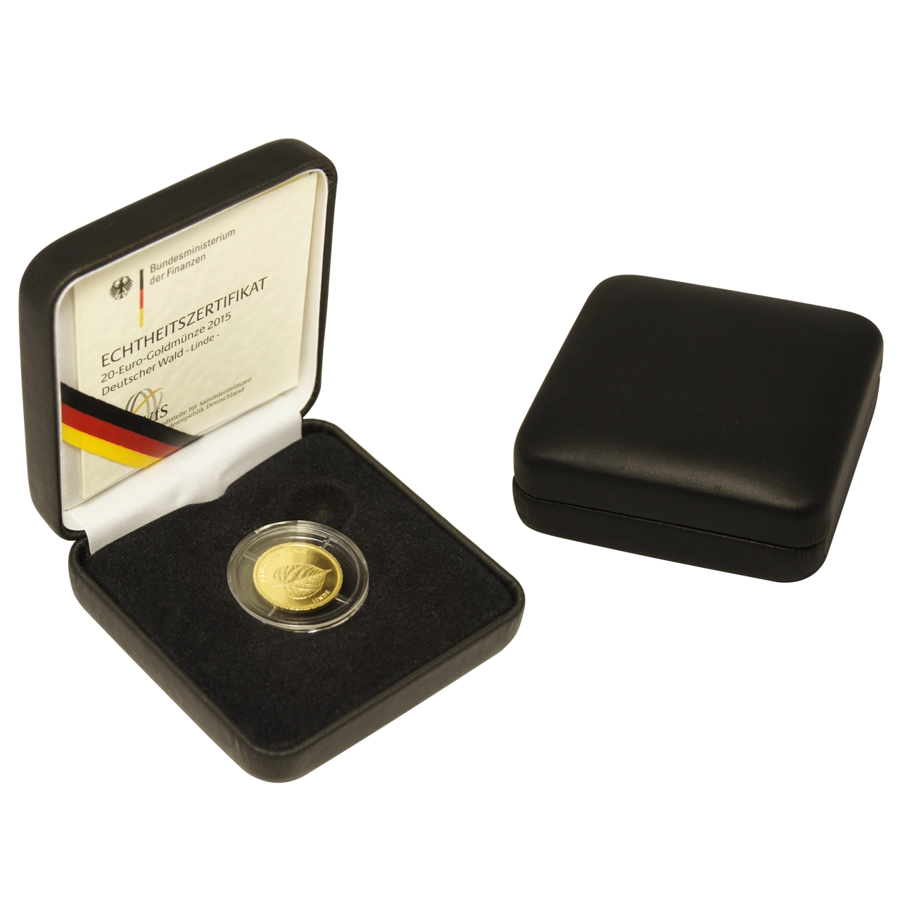 Hierbei handelt es sich um eine 1/8 oz Münze (entspricht einem Feingewicht von 3,8875 g) aus 999,9 Feingold. Der Nennwert dieser schönen Goldmünze beträgt 20 €. Das Münzmotiv der „Linde“ 2015 zeigt ein einzeln geprägtes Lindenblatt mit dem Schriftzug „Deutscher Wald“ und „Linde“.