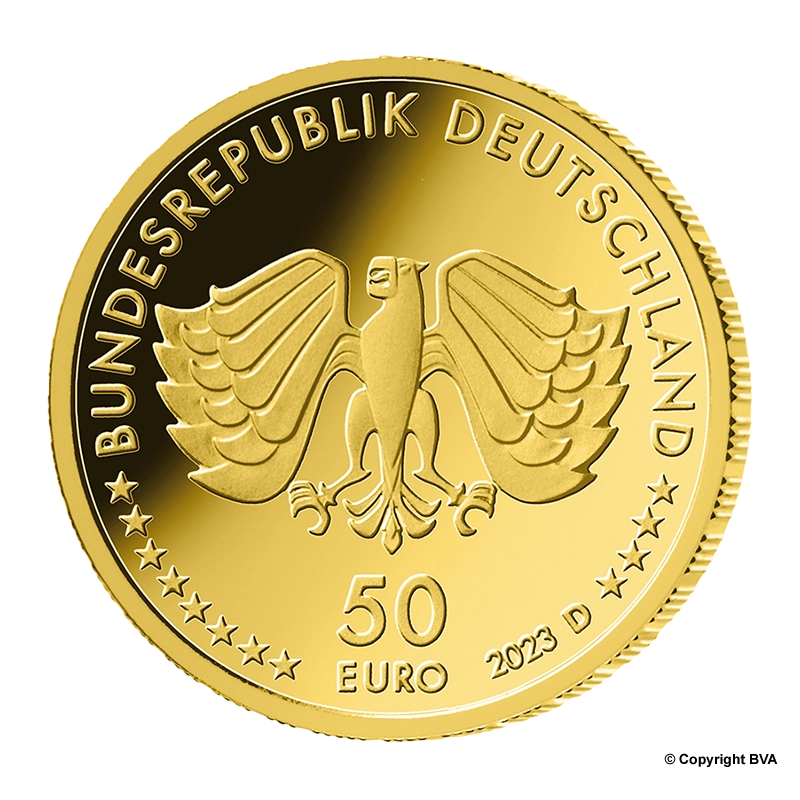 Geprägt werden die Goldeuro Münzen mit einer Feinheit von 999,9/1000 (Feingold) gleichmäßig verteilt in allen fünf Münzprägeanstalten der Bundesrepublik Deutschland (A, D, F, G und J)