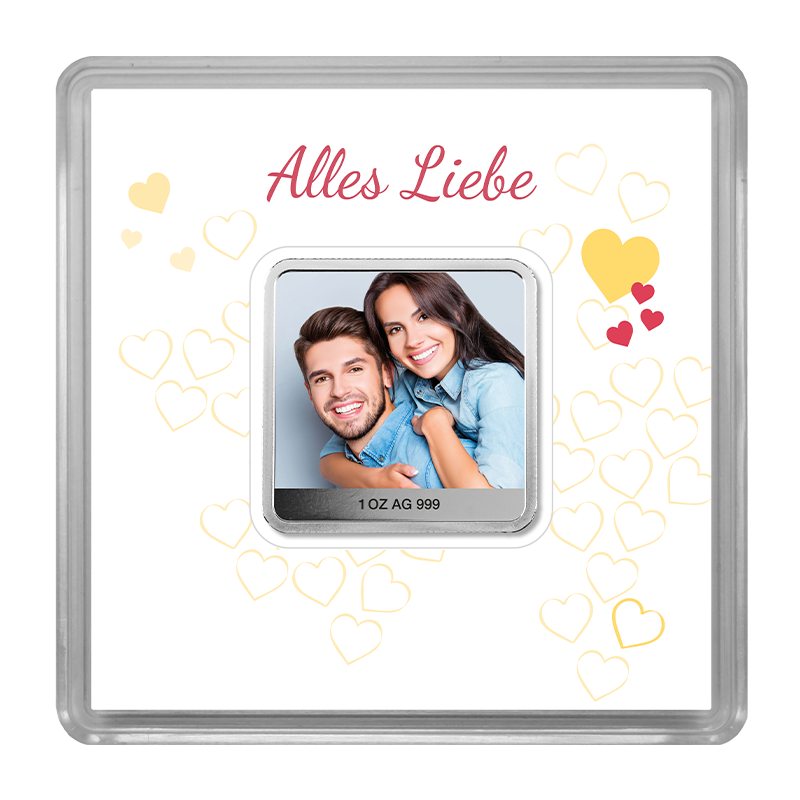 Gestalten Sie jetzt Ihren individuellen Silberbarren mit einem Bild.