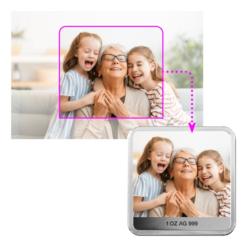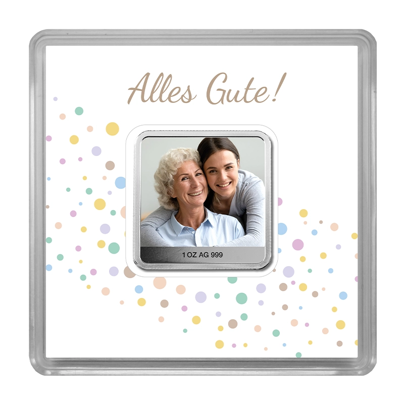 Gestalten Sie jetzt Ihren individuellen Silberbarren mit einem Bild.