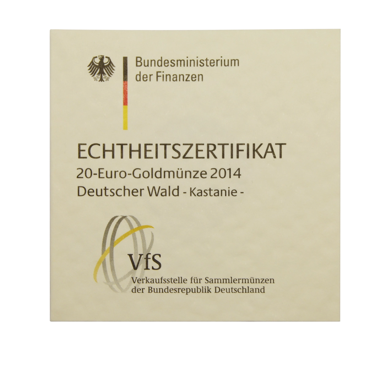 The 2014 “Chestnut” coin motif includes an individually embossed chestnut leaf with the words “German Forest” and “Chestnut”.