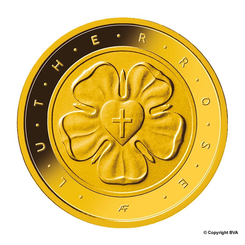 The Luther Rose was issued by the German Mint in 2017 to mark the 500th anniversary of the Reformation. Adelheid Fuss from Geltow is responsible as the artist. The coin was photographed by Hans-Jürgen Fuchs from Stuttgart.