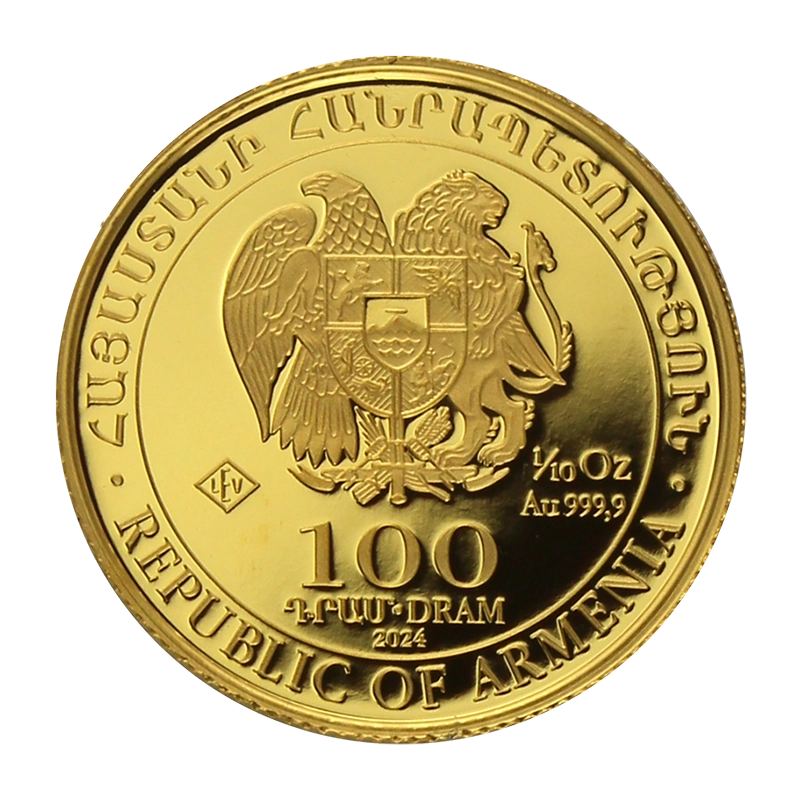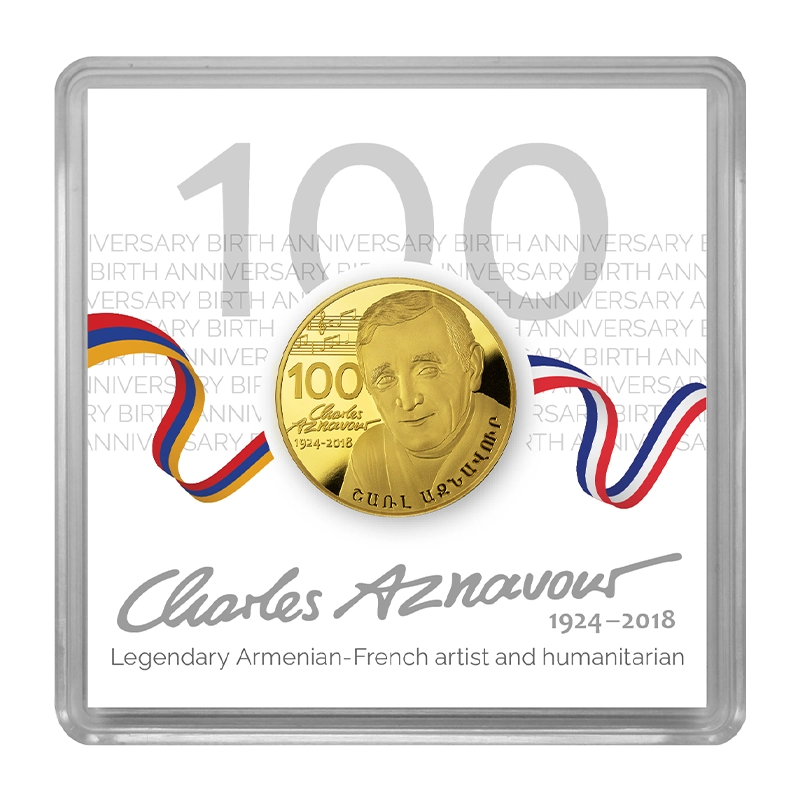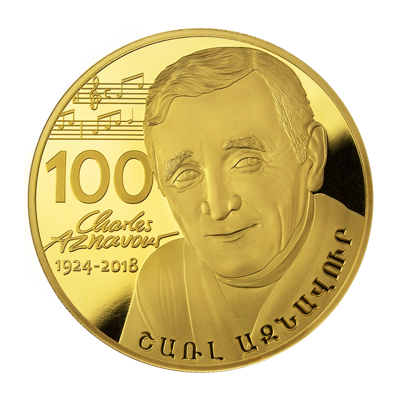 Charles Aznavour 2024 - Armenien 100 Dram 1/10 oz gold coin .9999 BU
