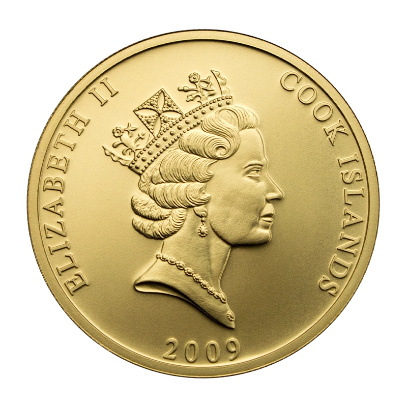 The gold bullion coin Cook Islands of the island state in the South Pacific was issued in gold for the first time in 2009. It owes its name, like the islands, to the british sailor and discoverer James Cook.The motif of this gold coin remains the same every year. The obverse side shows the legendary Bounty, a Royal Navy sailing ship with three masts.The reverse side shows a portrait of Queen Elisabeth II.The Cook Islands gold coins are minted in Germany and have a fineness of 999,9/1000. The nominal value of this 1 oz gold coin is 100 CID (Cook Island Dollar), the legal tender of the Cook Islands. There is no limitation, the demand determines the yearly denomination. Investment gold is exempt from tax under § 25c UStG.