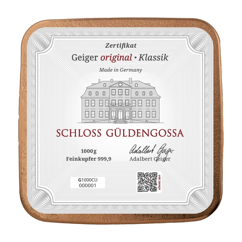 Copper Bar Geiger original - 1000 g casted .9999