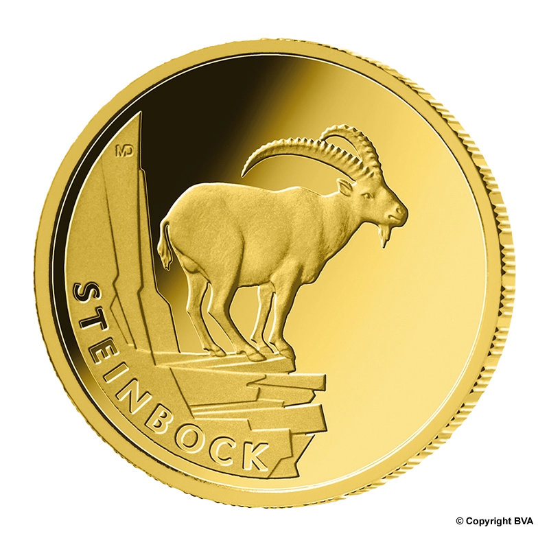 The ibex is the second motif of this gold coin series, designed by Marianne Dietz from Berlin.