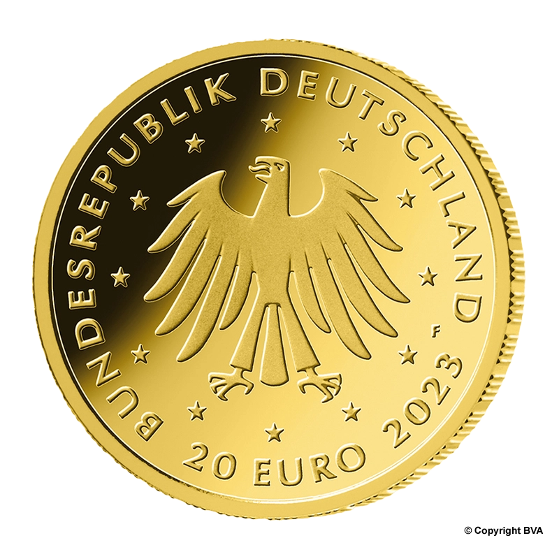 The coin series of the 20 euro gold coin "Return of the wild animals" in fine gold.