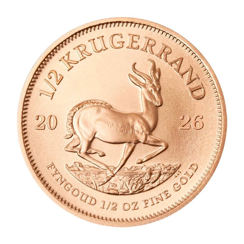 TThe 1/2 oz gold Krugerrand is undoubtedly the best-known and most widespread gold coin in the world. Furthermore it is the oldest gold coin, which is still produced. A particular feature of the Krugerrand is, that it has no nominal value and nonetheless is legal tender in the Republic of South Africa.