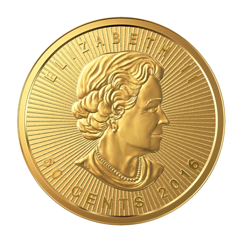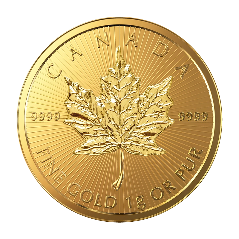 The Canadian coin “Maple Leaf” is one of the best known bullion coins in the world and the gold coin is issued by the Royal Canadian Mint since 1979. This bullion coin with brilliant uncirculated quality has a fineness of 999,9/1000. On the obverse side of the coin is a portrait of Queen Elisabeth II. and the reverse side shows the typical Canadian Maple Leaf. The motif is the same every year. The Maple Leaf we also have in stock as a silvercoin 1 oz and as a platinum coin 1 oz.