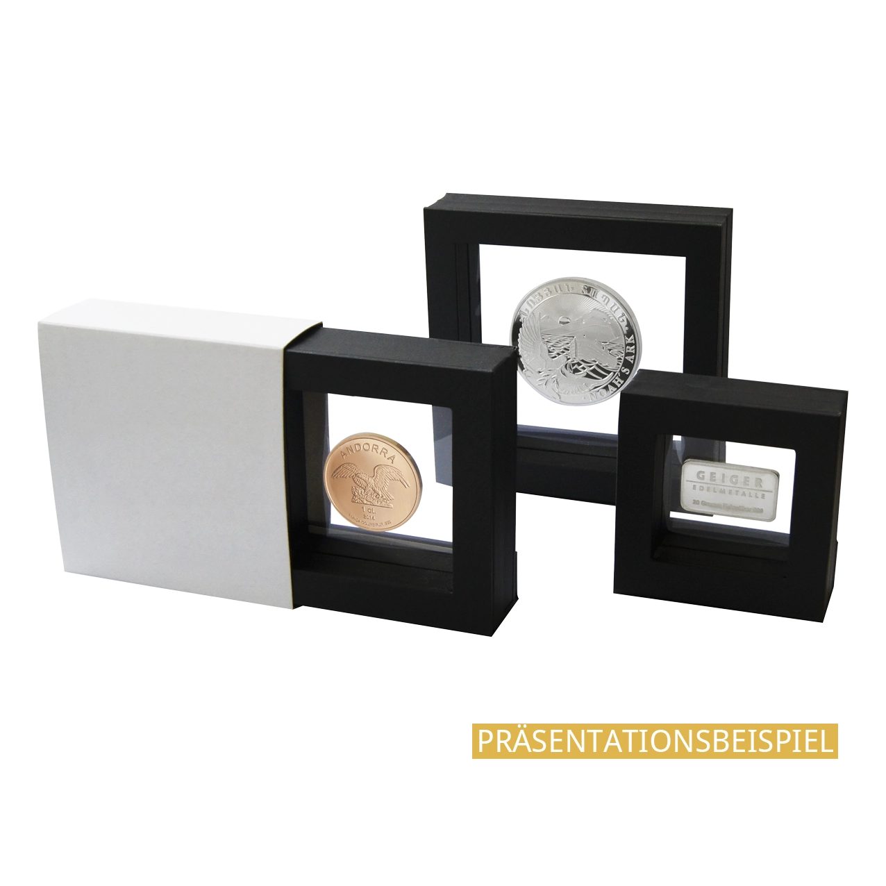 The object frame setting a perfect stage for your precious metal coins. The frame can be opened up and firmly closed by a ma…