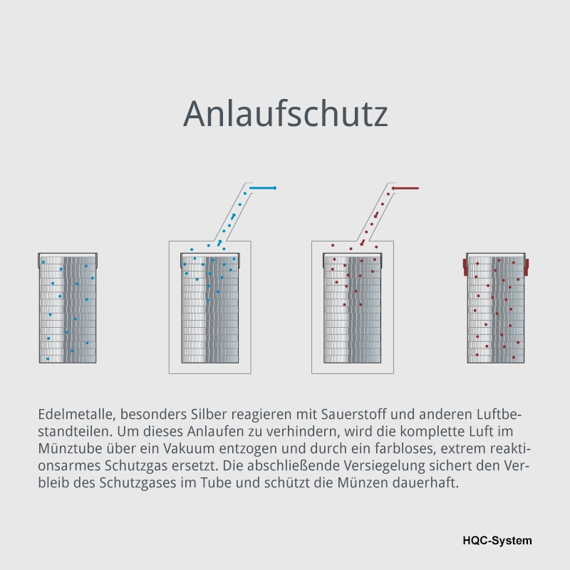 The silver coin Noah'|s Ark is issued since 2011. When ordering 20 pieces of the 1/2 oz coin it is delivered within a tube made of plastic and a protective HQC-System, which is developed exclusively from Geiger Edelmetalle and gives a maximum protection against tarnishing.