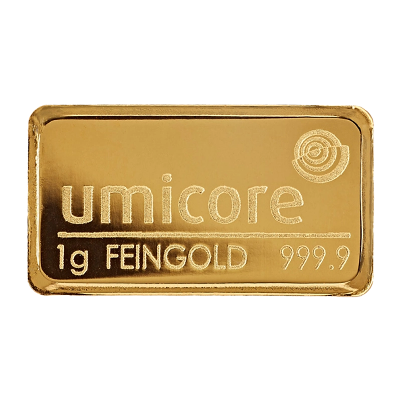 Goldbarren - 1 g .9999 - Umicore Neuware (geprägt)