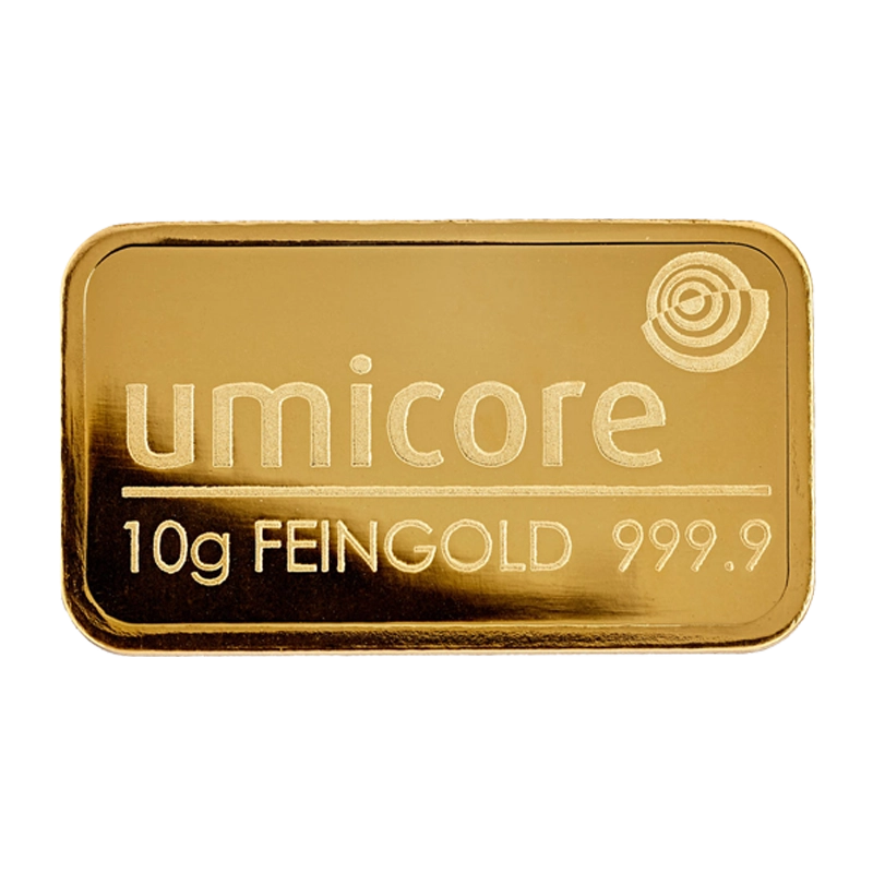 Goldbarren - 10 g .9999 - Umicore Neuware (geprägt)