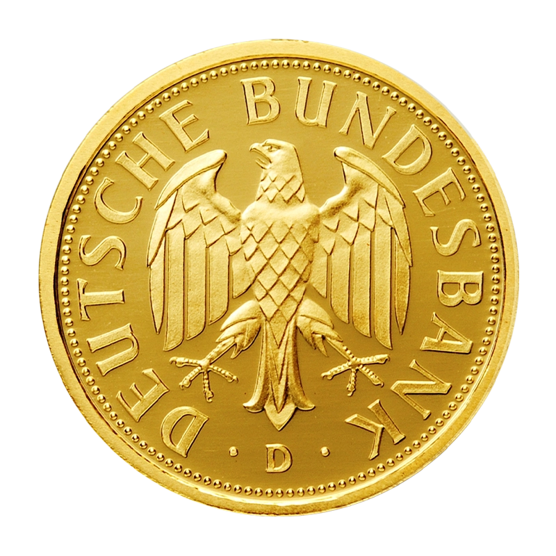 Anlässlich des Währungswechsels von der D-Mark zum Euro und zum Gedenken an die Deutsche Mark gab die Deutsche Bundesbank im Jahre 2001 die 1-DM-Goldmünze heraus. Geprägt wurden 1.000.000 Stück dieser Gedenkmünze mit einer Feinheit von 999,9/1000 (Feingold) gleichmäßig verteilt in allen fünf Münzprägeanstalten der Bundesrepublik Deutschland (A, D, F, G und J). Die Gestaltung der Goldmark entspricht der Originalmünze, bis auf die geänderte Umschrift „Deutsche Bundesbank“ auf der Motivseite, die den Bundesadler rahmt. Sichern Sie sich dieses einzigartige Stück deutscher Zeitgeschichte. Bedingt durch die für Sammlermünzen begrenzte Prägeauflage verspricht diese einzigartige Goldmünze ein hohes Wertsteigerungspotential.