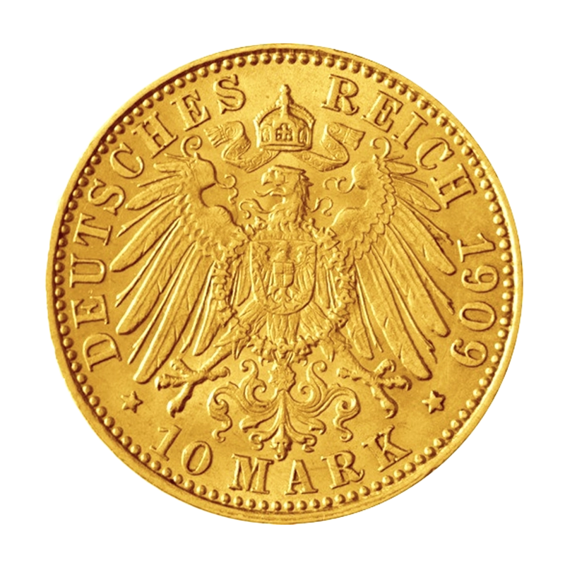 Nach der Vereinigung der deutschen Staaten zum deutschen Kaiserreich, folgte die Einführung einer gemeinschaftlichen Währung, der Mark. Jeder deutsche Staat erhielt das Prägerecht für die Goldmark. Die 10 Reichsmark Goldmünzen wurden zwischen 1872 und 1915 geprägt.