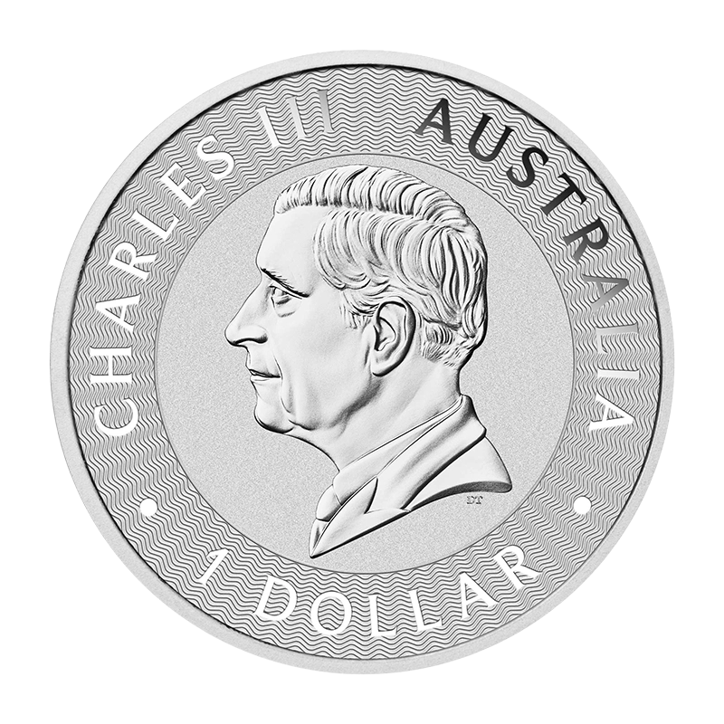 Neben dem Känguru ist ebenfalls das Prägejahr, das Feingewicht und der Feingehalt auf der Motivseite aufgeprägt. Wie jede Commonwealth-Münze trägt die Wertseite der Münze das Portrait des britischen Monarchen Königin Elisabeth II oder König Charles III. Lieferung nach Verfügbarkeit.