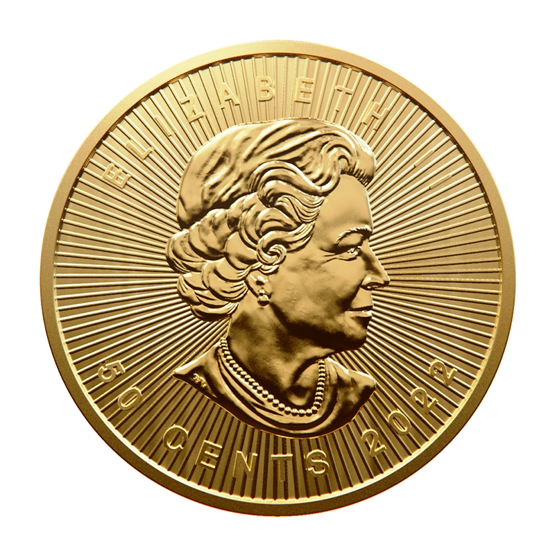 Die kanadische Münze "Maple Leaf" zählt zu den bekanntesten Anlagemünzen weltweit und wird in Gold seit 1979 von der Royal Canadian Mint geprägt. Die Anlagemünze in Stempelglanz hat eine Feinheit von 999,9/1000. Auf der Wertseite ist das Portrait von Königin Elisabeth II. abgebildet oder Charles III, auf der Motivseite das für Kanada typische Ahornblatt. Das Motiv bleibt jedes Jahr gleich.Lieferung nach Verfügbarkeit.