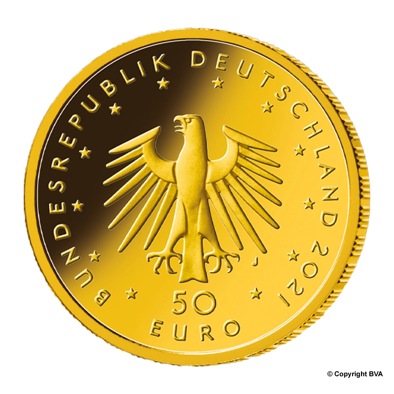 Geprägt werden die Goldeuro Münzen mit einer Feinheit von 999,9/1000 (Feingold) gleichmäßig verteilt in allen fünf Münzprägeanstalten der Bundesrepublik Deutschland (A, D, F, G und J)