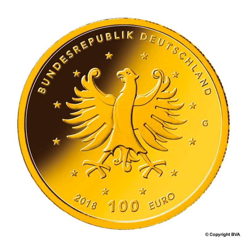 Geprägt werden die Euro Goldeuro Münzen mit einer Feinheit von 999,9/1000 (Feingold) gleichmäßig verteilt in allen fünf Münzprägeanstalten der Bundesrepublik Deutschland (A, D, F, G und J) mit jährlich wechselnden Motiven. Sichern Sie sich dieses einzigartige Stück deutscher Zeitgeschichte. Bedingt durch die für Sammlermünzen niedrige Prägeauflage von maximal 200.000 Stück, verspricht diese einzigartige Goldmünze ein hohes Wertsteigerungspotential. Der Ausgabepreis betrug damals 541,62 Euro. Die bereits erschienenen 100 Euro Münzen dieser Serie sind 2002 Euro-Einführung, 2003 Quedlinburg, 2004 Bamberg, 2005 Fußball-WM 06, 2006 Weimar, 2007 Lübeck, 2008 Goslar, 2009 Trier, 2010 Würzburg, 2011 Wartburg, 2012 Aachen/Aachener Dom, 2013 Dessau-Wörlitz, 2014 Kloster Lorsch, 2015 Oberes Mittelrheintal, 2016 Regensburg, 2017 Wittenberg.
