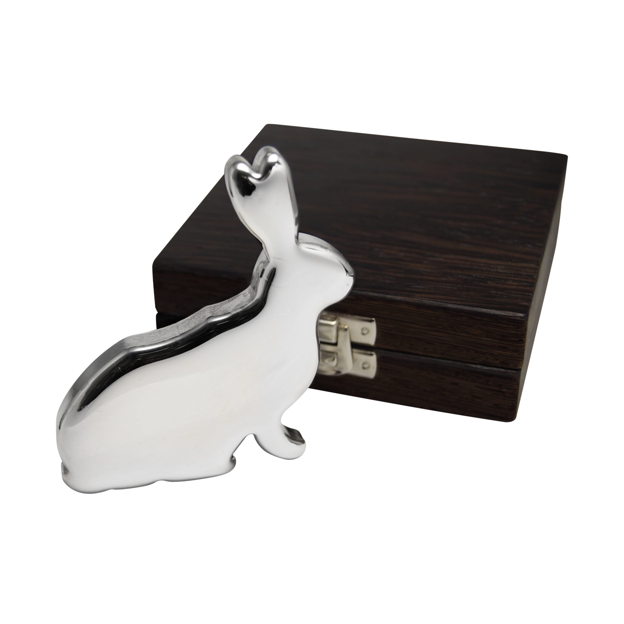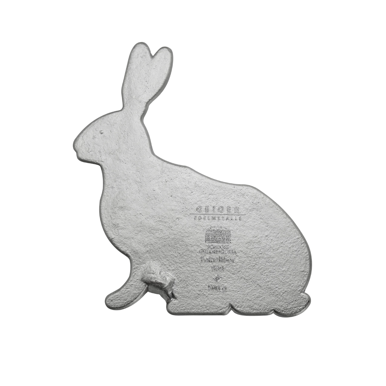 Eine schöne, hochwertige und außergewöhnliche Geschenkidee aus dem Hause Geiger: Gegossener Motivbarren aus Silber in der Feinheit 999/1000 in Form eines Hasen in gewohnter Geiger-Qualität, schutzlackiert und in einem edlen, im sächsischen Erzgebirge in Handarbeit gefertigten Holzetui verpackt. Durch den Schutzlack können Sie den hübschen Silberbarren bedenkenlos in die Hand nehmen und die Haptik genießen – das Einschweißen in eine störende Folie ist nicht mehr nötig. Dieser Barren ist außerdem in 500 g Feinkupfer erhältlich.Andere Motive sind Herz, Stern und Katze, weitere werden folgen.