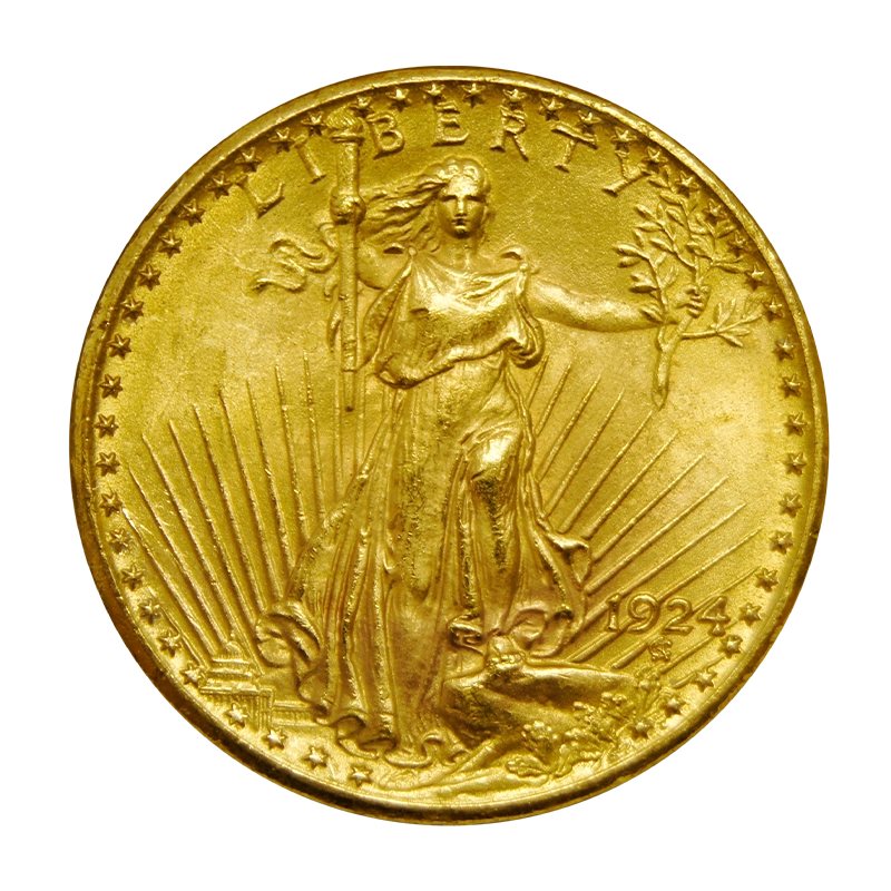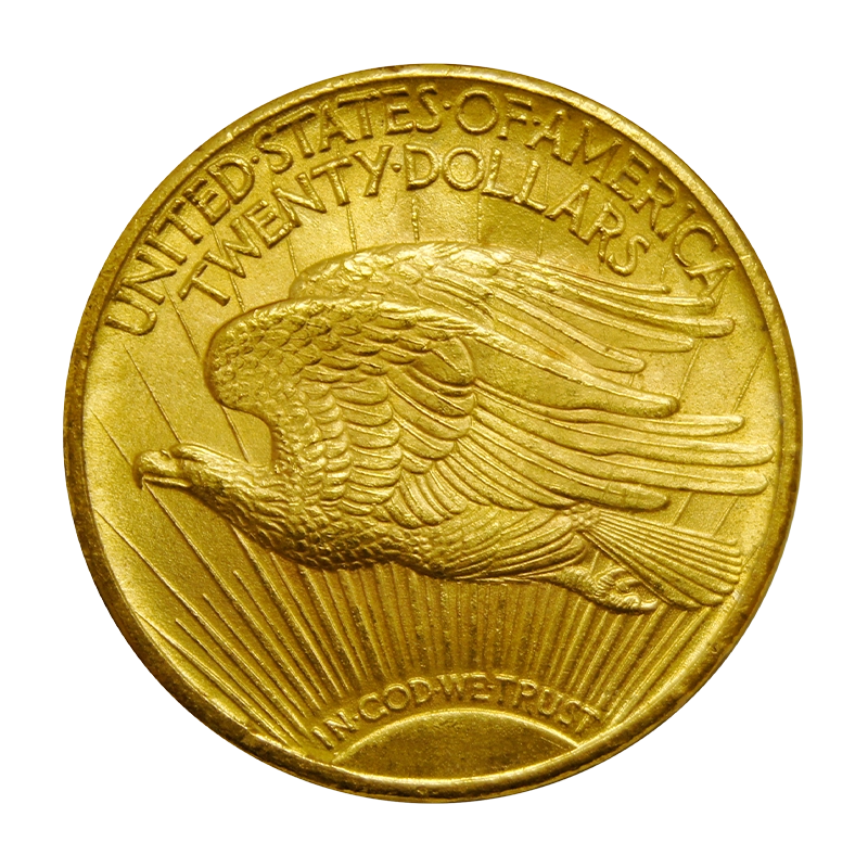 Die Münze wurde nach dem Bildhauer Augustus Saint-Gaudens benannt, welcher die Münze einst entwarf. Sie zeigt die Lady Liberty neben dem Prägejahr und dem Wort Liberty vor einer aufgehenden Sonne. Auf der anderen Seite dieser schönen Münze findet sich ein Weißkopfseeadler im Flug umrandet von den Worten „United States of America“, „Twenty Dollars“ und „In god we trust“. Die Goldmünze wurde in hohen Auflagezahlen bis zum sog. Goldverbot 1933 geprägt und gilt heute noch als attraktive Anlagemünze.