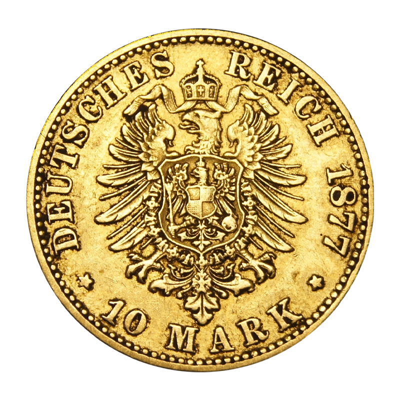 Die unter Sammlern beliebte Goldmünze des deutschen Kaisers Wilhelm I. wurde in den Jahren 1872 bis 1888 erstmalig in Form eines 10-Mark-Goldstücks geprägt. Bei den ersten Jahrgängen (1871-1873) wurde der Nominalwert noch in verkürzter Schreibweise (10 M) dargestellt, erst mit dem Jahrgang 1874-1888 fand die vollständige Prägung des Nominalwertes (10 Mark) seine Berücksichtigung. Aufgrund der zum Teil noch sehr guten Erhaltung dieser historischen 10-Mark-Goldmünzen sind diese heute selbst international unter Sammlern sehr gefragt.